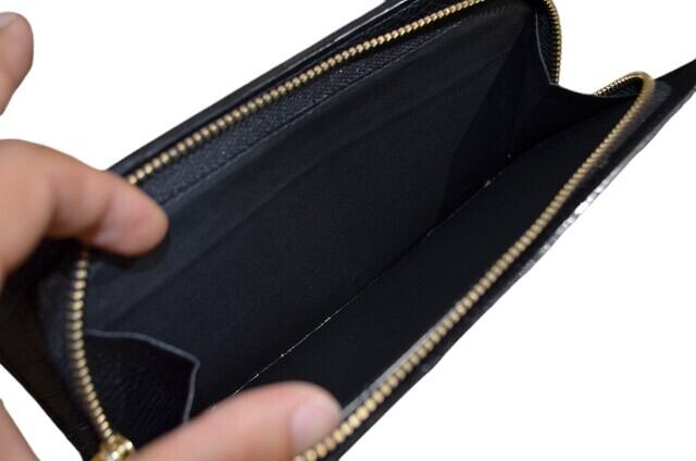 お札や通帳、領収書などが入る大きなポケット2つ、小銭入れ2つ、パスポートや通帳を挿めるポケット1つ、カード入れ12枚収納可能です。