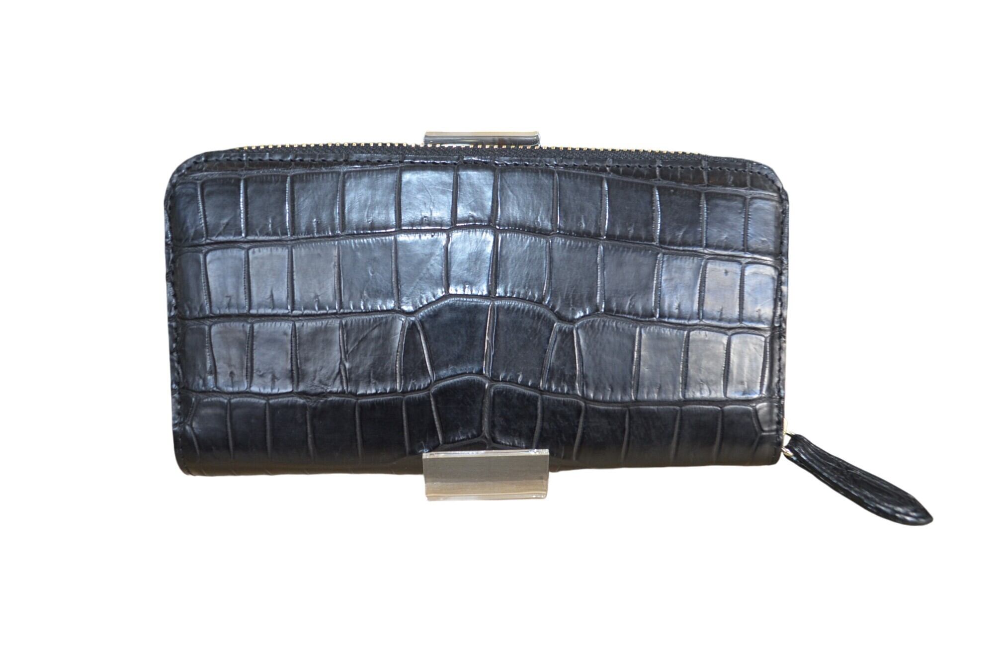 クロコダイル/ラウンドファスナー/ブラック