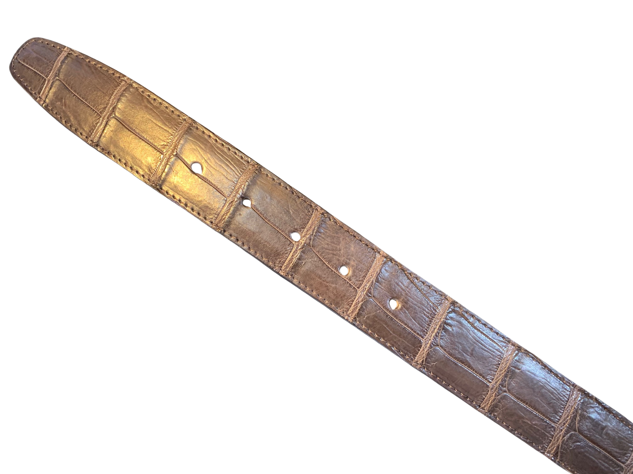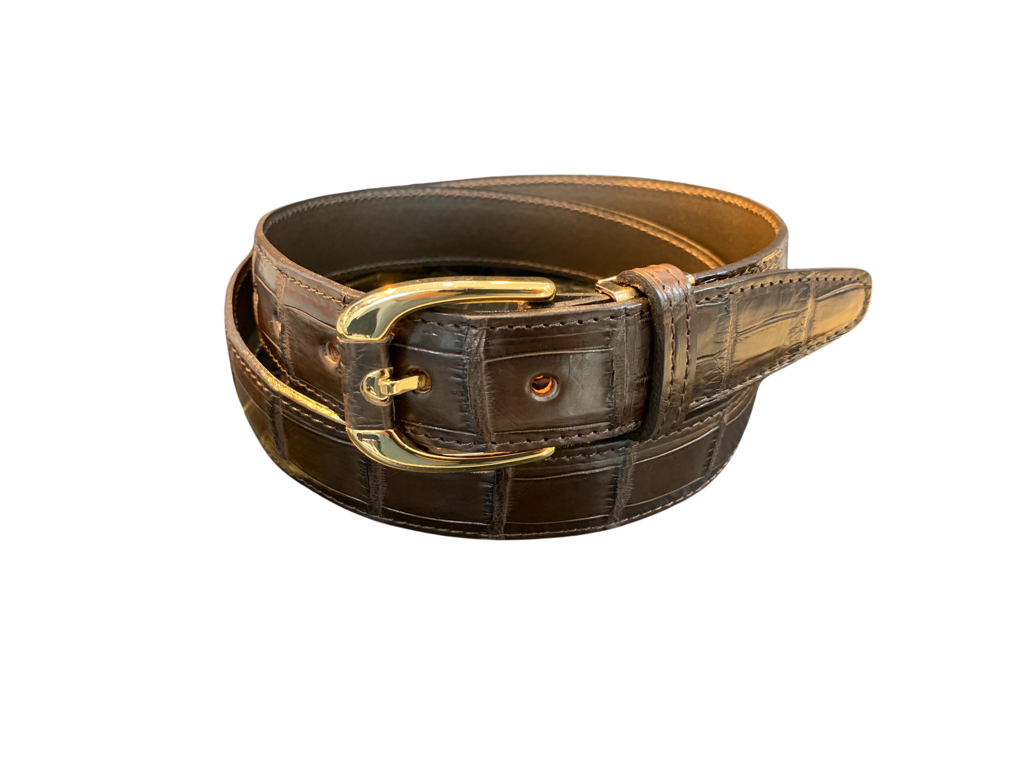 クロコダイルの魅力のひとつ、ウロコ模様がスーツスタイルで腰元をエレガントにキメてくれるアイテムです。