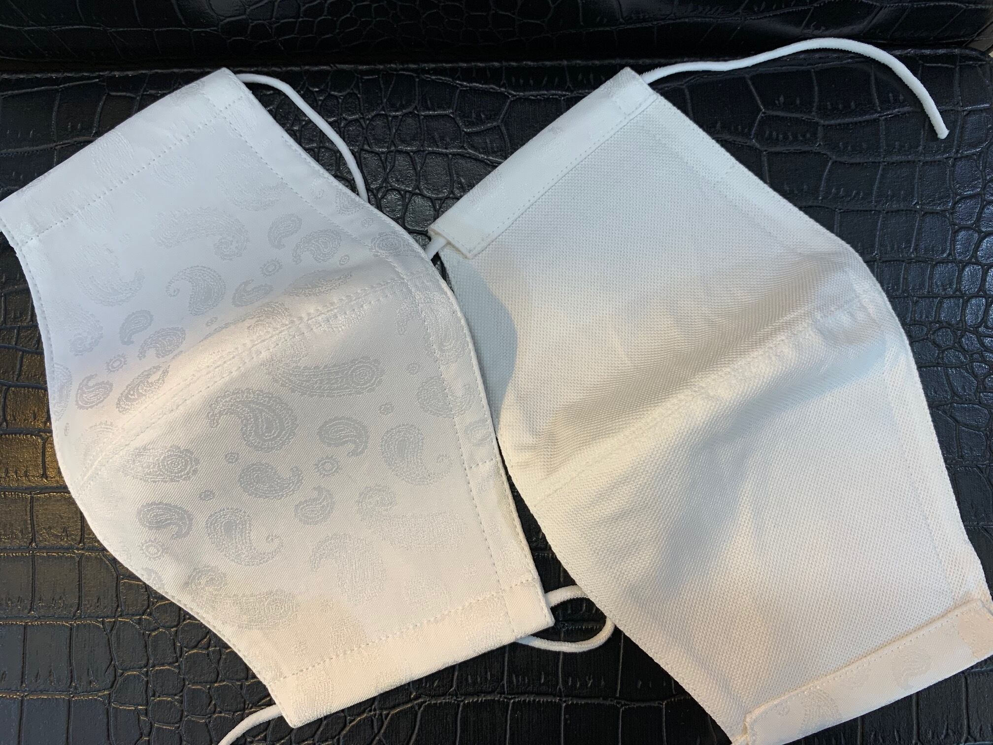 【ペイズリー】ホワイト/織り柄模様/光沢ジャガードマスク